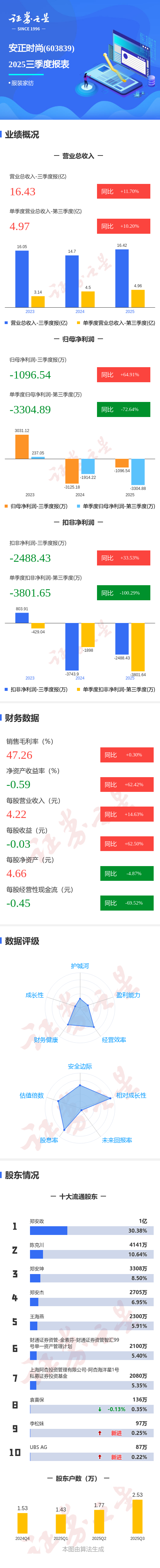 图解安正时尚三季报:第三季度单季净利润同比下降72.65%