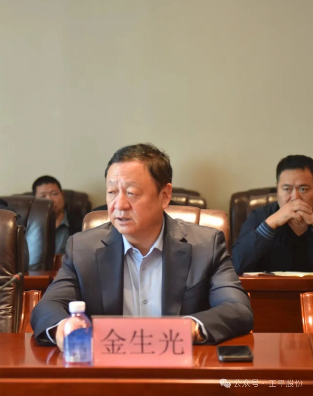 正平集团创始人、股份公司实际控制人、正平集团董事局主席金生光主持见面会。他对本次董事会主要领导的任职做了解释说明,他指出,彭有宏在担任公司董事长期间,恪尽职守、勤勉尽责,他代表股东对其在任职期间为公司发展做出的贡献表示衷心感谢,彭有宏卸任董事长后,将专注于公司生产经营和日常管理,继续担任公司总裁职务。田世生董事长在通信及互联网行业、证券行业等方面都具有丰富的经验,田世生董事长的当选,将为正平注入新的活力和动力,给公司带来新的希望。