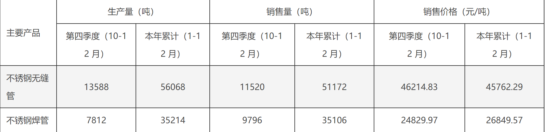 1月25日公告,公司2023年不锈钢无缝管销售量5.12万吨,不锈钢焊管销售量3.51万吨。