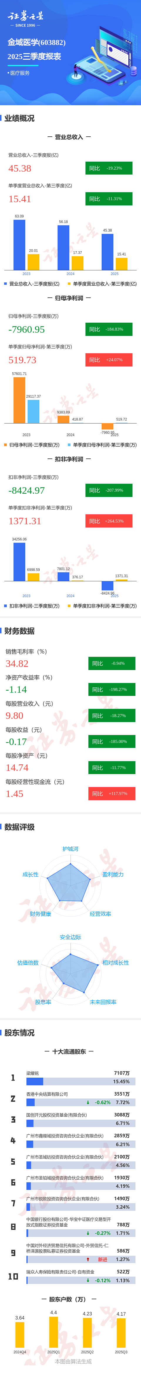 图解金域医学三季报:第三季度单季净利润同比增长24.08%