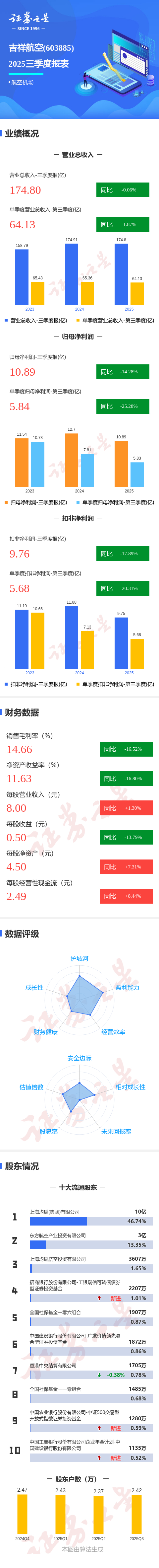 图解吉祥航空三季报:第三季度单季净利润同比下降25.29%