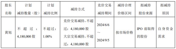 截至公告披露日,黄旭持有公司股份66,600,108股,占公司总股本的15.93%,上述股份全部来源于公司首次公开发行股票前已持有的股份,且已于2023年2月8日起上市流通。