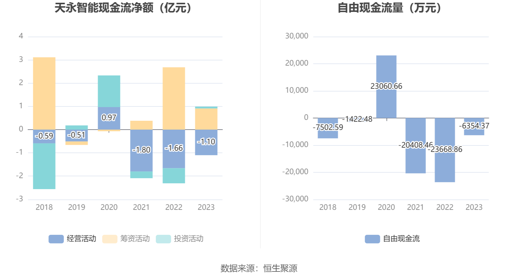 进一步统计发现,2023年公司自由现金流为-6354.37万元,上年同期为-23668.86万元。