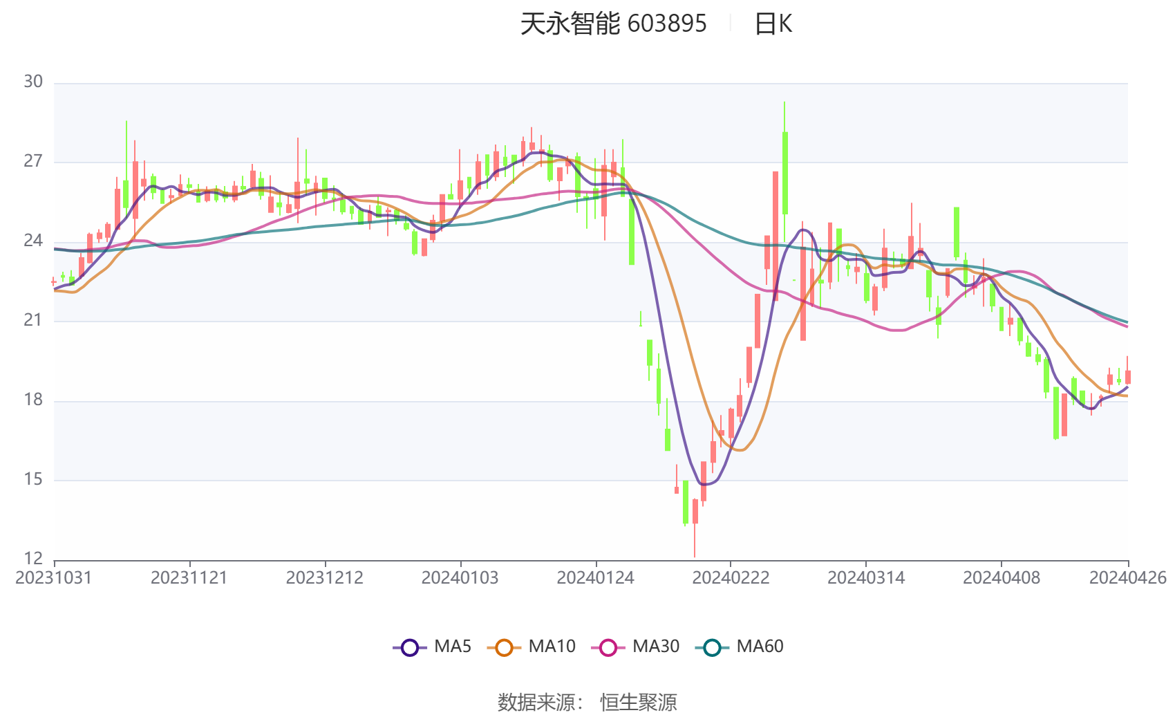 以4月26日收盘价计算,天永智能目前市盈率(TTM)约为-19.06倍,市净率(LF)约为5.69倍,市销率(TTM)约为3.48倍。
