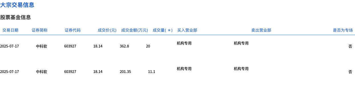 中科软今日大宗交易折价成交31.1万股,成交额564.15万元