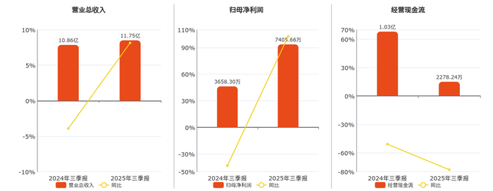 公司营业总收入为11.75亿元,在已披露的同业公司中排名第36。归母净利润为7405.66万元,在已披露的同业公司中排名第31。经营活动现金净流入为2278.24万元,在已披露的同业公司中排名第38,较去年同报告期经营活动现金净流入减少8035.41万元,同比较去年同期下降77.91%。