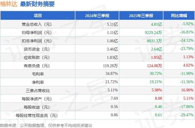 格林达(603931)2025年三季报简析:净利润同比下降16.81%,公司应收账款体量较大
