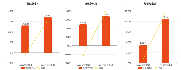 公司营业总收入为18.60亿元。归母净利润为1.71亿元。经营活动现金净流入为4.04亿元。