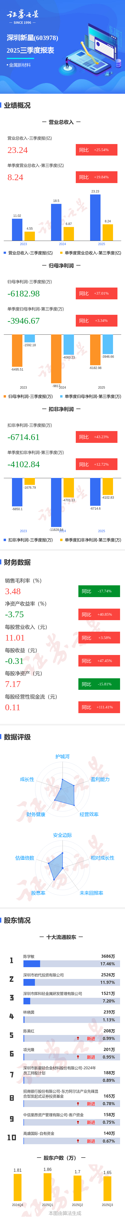 图解深圳新星三季报:第三季度单季净利润同比增长3.34%