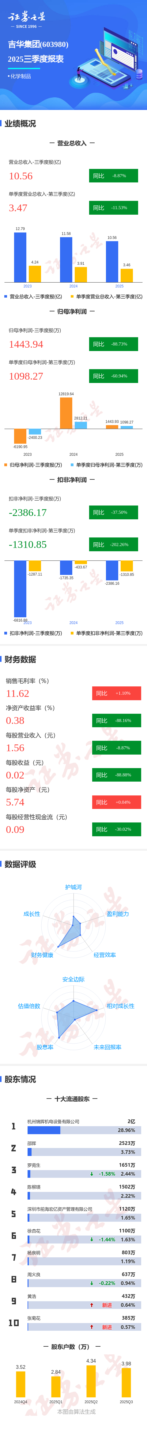 图解吉华集团三季报:第三季度单季净利润同比下降60.95%
