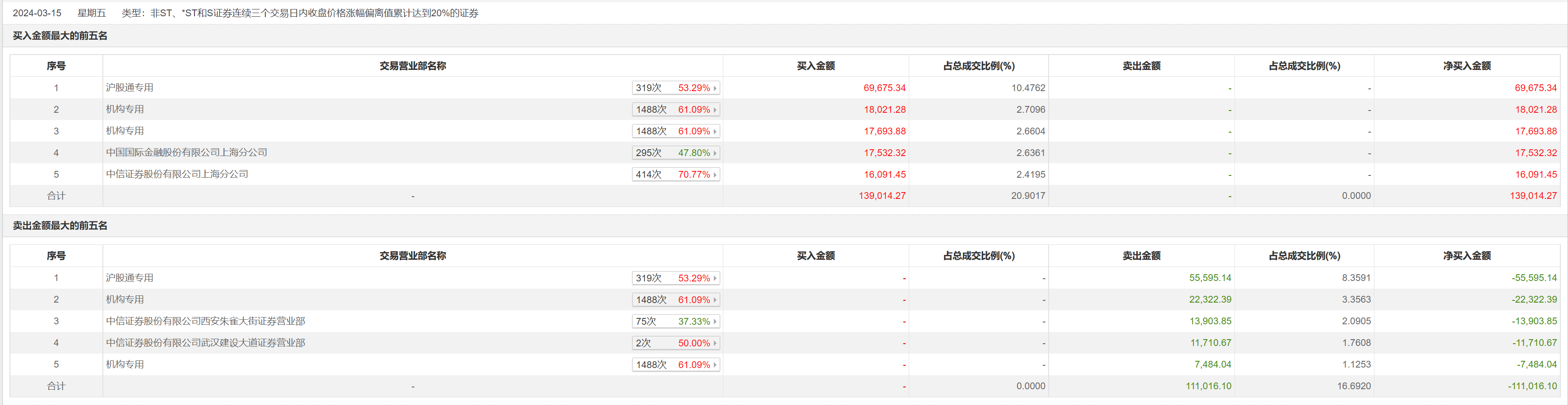 3月15日,洛阳钼业今日涨7.65%,龙虎榜数据显示,3月13日至3月15日期间,上榜营业部席位合计成交25.0亿元,其中买入金额为13.9亿元,卖出金额为11.1亿元,合计净买入2.8亿元。