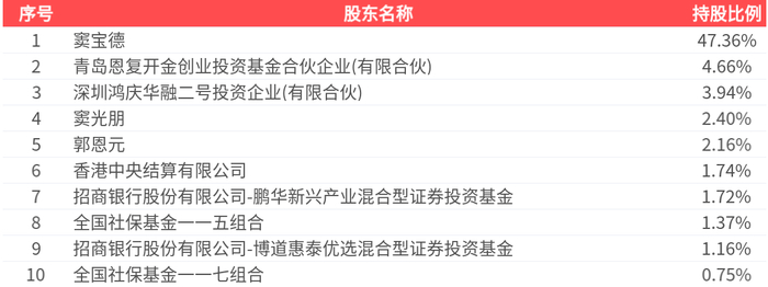 公司股东户数为1.29万户,前十大股东持股数量为2.83亿股,占总股本比例为67.27%,前十大股东持股情况如下: