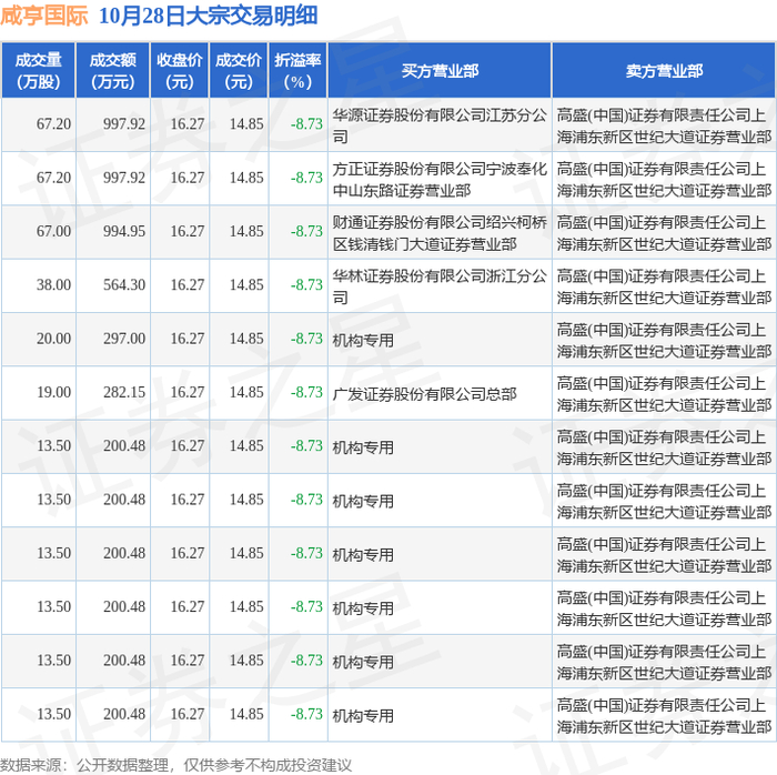 10月28日咸亨国际现12笔大宗交易 机构净买入1499.88万元