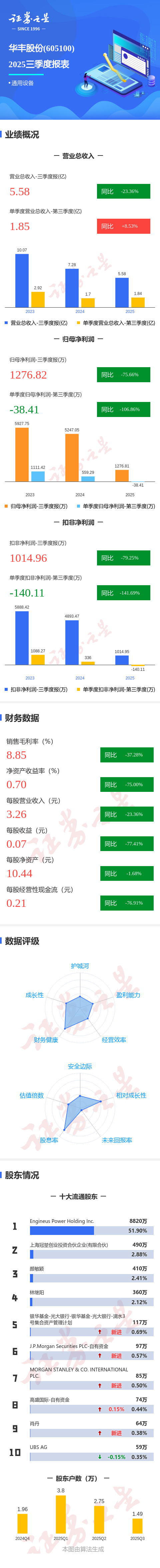图解华丰股份三季报:第三季度单季净利润同比下降106.87%