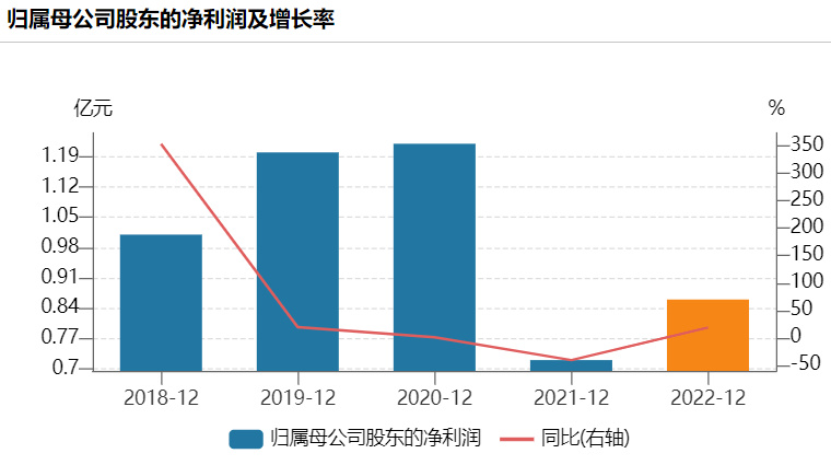 2022年,公司营收15.15亿元,同比上升11.91%,归母净利润8568.2万元,同比上升18.78%。2023一季报显示,公司营收5.27亿元,同比上升32.09%;归母净利润4056万元,同比上升35.59%。