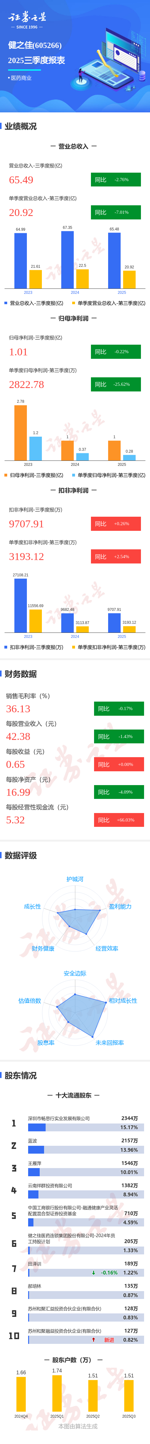 图解健之佳三季报:第三季度单季净利润同比下降25.62%