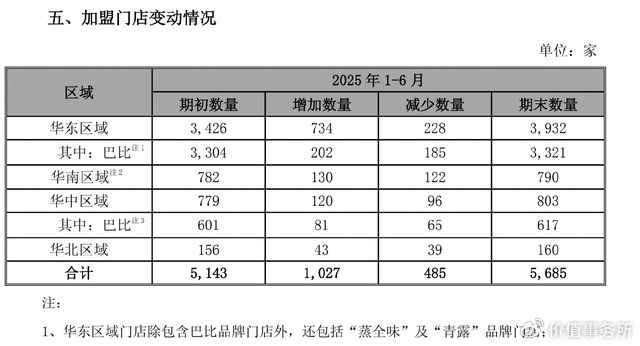 看下图,截至2025H1,巴比已经有5685家门店了,整个上半年净增542家。