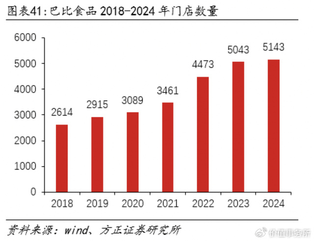 然后再看一下这张图,巴比食品是2020年上市的,刚上市那年的门店数也就3089家。有一说一,在2020年以前,巴比的门店增速是比较慢的,一年大体也就净增100-300家的样子。