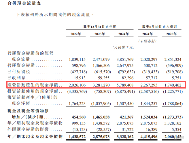 但亮眼业绩背后的资金操作逻辑备受争议。一方面,分红力度大——报告期内累计股息分配54亿元,占同期 91.82亿元总利润的58.81%;另一方面,却推进赴港IPO募资,形成“一边掏钱给股东、一边寻求外部融资”的反差。更关键的是,东鹏饮料自身资金极为充裕。自2023年起,现金类资产稳定在60亿元以上,2024年及2025年上半年叠加理财产品后“现金类”资产超百亿元;经营现金流同样强劲,三年半合计净流入128.36亿元,无需外部资金即可支撑日常经营。这种“资金充足仍募资”的操作,让市场难以理解其募资必要性。
