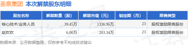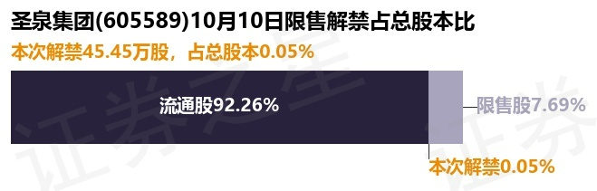 圣泉集团(605589)45.45万股限售股将于10月10日解禁,占总股本0.05%
