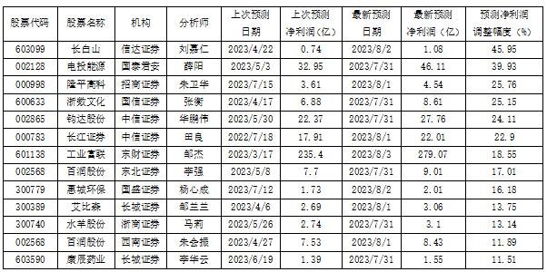 当中长白山(603099)、电投能源(002128)、隆平高科(000998)、浙数文化(600633)钧达股份(002865)、长江证券(000783)、工业富联(601138)、百润股份(002568)、惠城环保(300779)、艾比森(300389)、水羊股份(300740)、康辰药业(603590)等12家公司获上调幅度超一成。