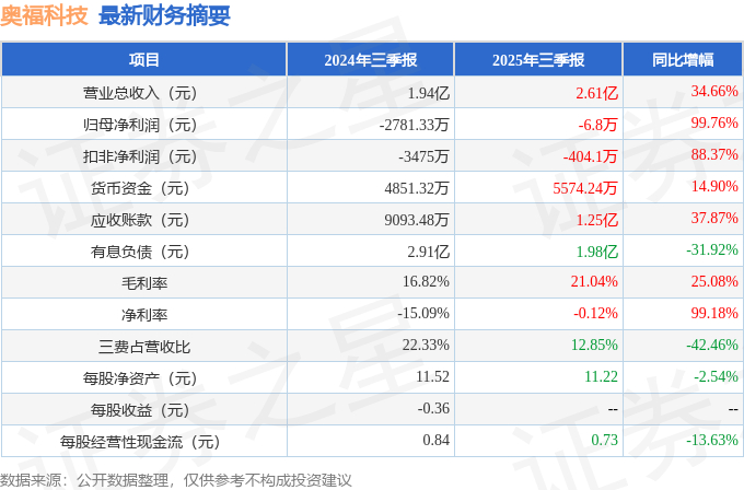 奥福科技(688021)2025年三季报简析:营收上升亏损收窄,盈利能力上升
