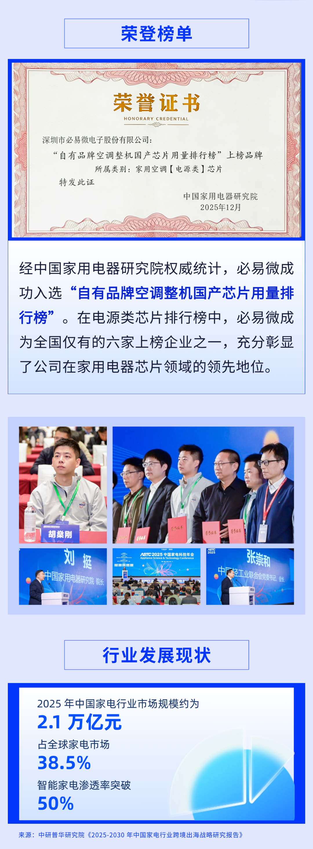 必易微荣登自有品牌空调整机国产芯片用量排行榜