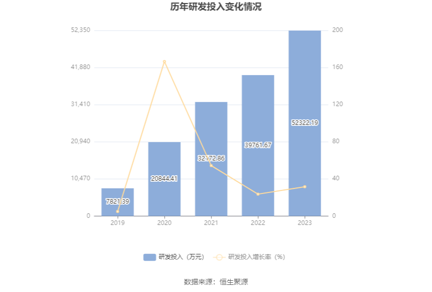 2023年全年,公司研发投入金额为5.23亿元,同比增长31.59%;研发投入占营业收入比例为103.47%,相比上年同期上升49.64个百分点。此外,公司全年研发投入资本化率为18.86%。