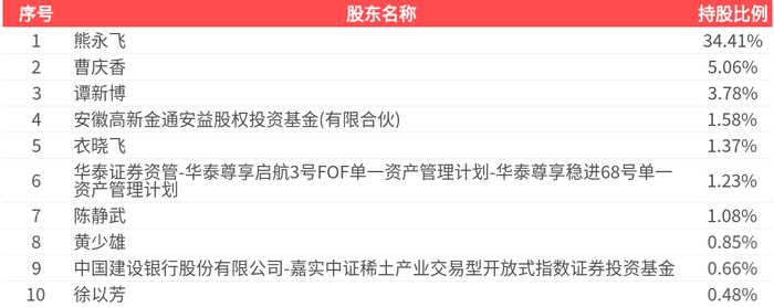 公司股东户数为1.10万户,前十大股东持股数量为5781.71万股,占总股本比例为50.50%,前十大股东持股情况如下:
