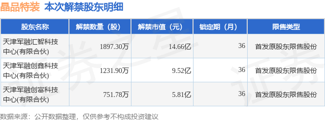 晶品特装(688084)3880.98万股限售股将于12月8日解禁,占总股本51.3%
