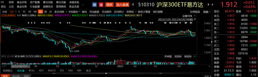 资料显示,沪深300指数由中国A股市场中规模大、流动性好的最具有代表性的300只证券组成,以综合反映中国A股市场上市公司证券的整体表现。截至2023年4月27日,该指数的前十大权重股包括贵州茅台、宁德时代、中国平安、招商银行、五粮液等各行业龙头个股。(数据来源:中证指数公司,指数成份股不代表个股推荐)