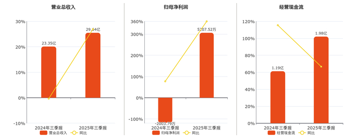 公司营业总收入为29.64亿元。归母净利润为5207.52万元。经营活动现金净流入为1.98亿元。