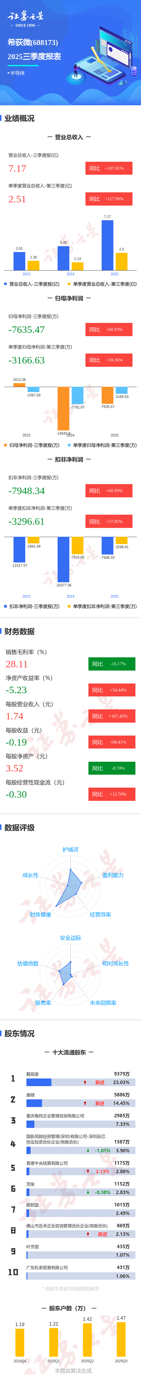 图解希荻微三季报:第三季度单季净利润同比增长59.36%