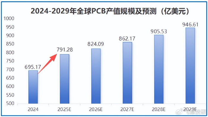 行业预测,2025年全球PCB市场产值有望攀升至790亿美元。