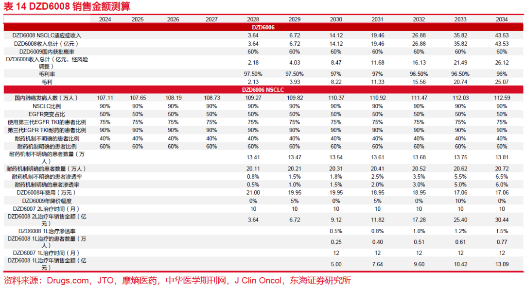 我们预期DZD6008有望于2026年H2在国内进入注册性临床,并在2028年在国内上市,暂时只考虑国内市场。假设获批概率60%。