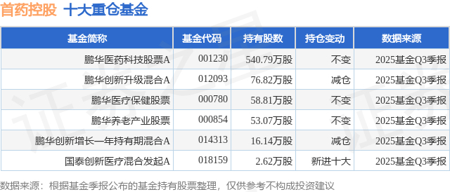 根据2025基金Q3季报公募基金重仓股数据,重仓该股的公募基金共6家,其中持有数量最多的公募基金为鹏华基金的鹏华医药科技股票A。鹏华医药科技股票A目前规模为19.21亿元,最新净值1.7501(12月1日),较上一交易日下跌0.56%,近一年上涨57.44%。该公募基金现任基金经理为金笑非。金笑非在任的基金产品包括:鹏华创新升级混合A,管理时间为2021年6月18日至今,期间收益率为52.07%;鹏华创新增长一年持有期混合A,管理时间为2022年6月21日至今,期间收益率为73.78%;鹏华医疗保健股票,管理时间为2024年4月27日至今,期间收益率为22.98%。