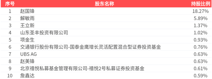 公司股东户数为1.24万户,前十大股东持股数量为4948.72万股,占总股本比例为30.69%,前十大股东持股情况如下: