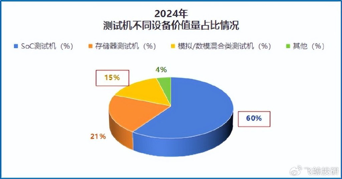 另外,在所有测试机中,SoC测试机是细分领域最大的一脉。2024年其价值量占比高达60%,比起模拟/数模混合类测试机的15%多了不止一星半点。