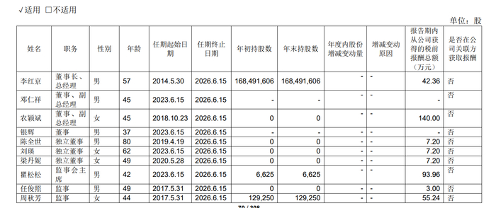 道通科技董事长、总经理为李红京,2024年,其从从公司获得的税前报酬总额为42.36万元,副总经理农颖斌薪酬为140万元,较2023年同期增长76万元。