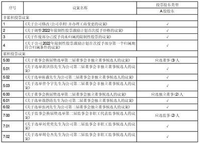 一、股东大会董事候选人选举、独立董事候选人选举、监事会候选人选举作为议案组分别进行编号。投资者应针对各议案组下每位候选人进行投票。