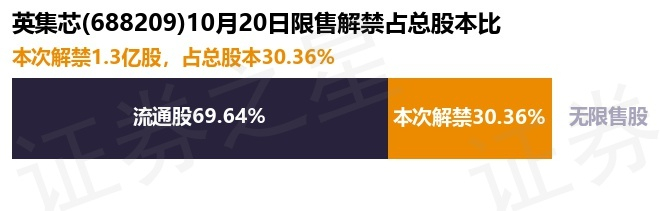 英集芯(688209)1.3亿股限售股将于10月20日解禁,占总股本30.36%