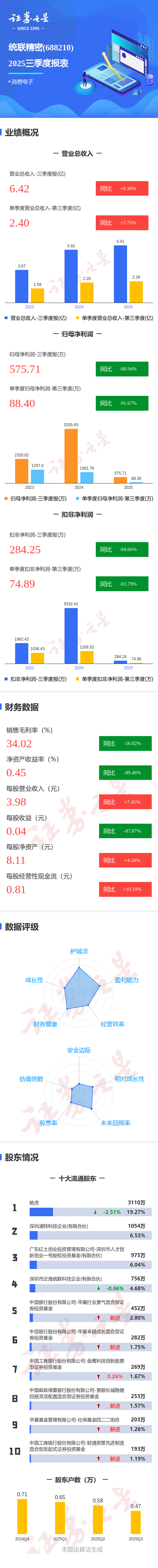 图解统联精密三季报:第三季度单季净利润同比下降91.67%