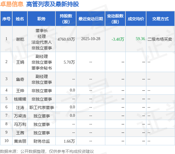 卓易信息:10月28日高管谢乾减持股份合计3.4万股