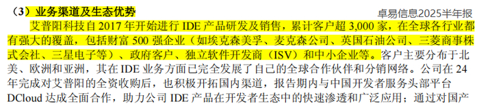 艾普阳科技自2017年开始IDE产品研发和销售,累计客户超3000家,涵盖三星、麦克森等众多财富500强企业。依托艾普阳原有渠道,公司积极开辟海外市场,在英国、瑞士等领域推行产品免费试用和开发者论坛等活动。