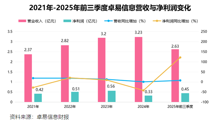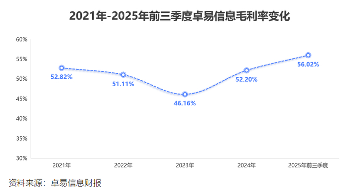 技术实力令卓易信息获得强悍溢价能力,2025年前三季度公司毛利率达到56.03%。