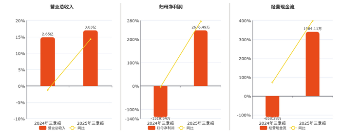 公司营业总收入为3.03亿元,在已披露的同业公司中排名第35。归母净利润为2676.49万元,在已披露的同业公司中排名第25。经营活动现金净流入为1964.11万元,在已披露的同业公司中排名第29。