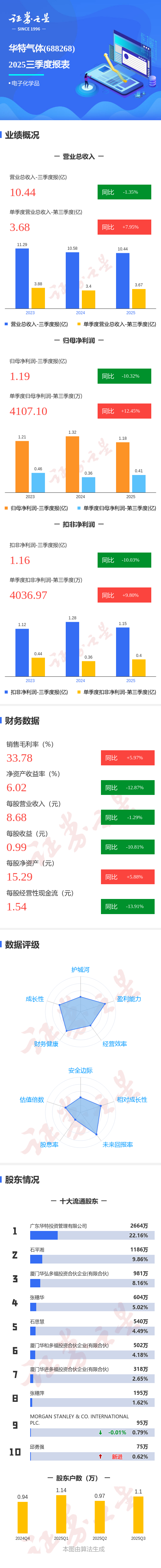 图解华特气体三季报:第三季度单季净利润同比增长12.45%
