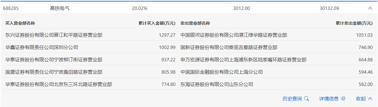 8月18日,高铁电气今日涨停,全天换手率达33.69%,振幅达18.29%。龙虎榜数据显示,营业部席位合计净买入1178.99万元。其中,东兴证券晋江和平路证券营业部、华鑫证券深圳分公司分别买入1297.27万元、1002.99万元;中国银河证券湛江绿华路证券营业部、国新证券娄底吉星路证券营业部分别卖出1051.03万元、746.90万元。