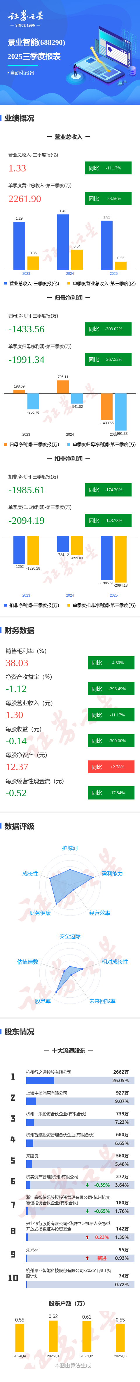 图解景业智能三季报:第三季度单季净利润同比下降267.53%