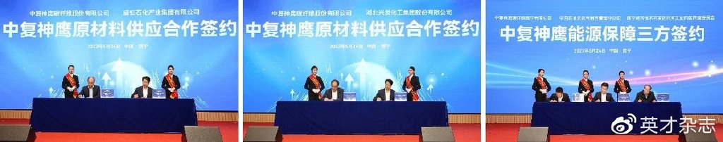 成立至今,在合作伙伴的鼎力支持和配合下,中复神鹰实现了高质快速发展。此次大会,中复神鹰诚挚邀请了供应链上下游的合作伙伴齐聚西宁,共同庆祝项目投产并共议未来发展。会上,中复神鹰分别与能源保障、原材料供应以及市场应用领域代表签署合作协议,并为重要合作伙伴颁发荣誉纪念奖牌。在以后的合作中,中复神鹰与各位合作伙伴将充分发挥自身优势,积极拓展合作空间,实现共赢发展。